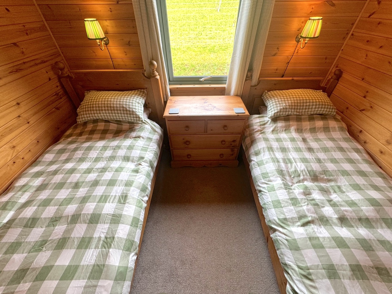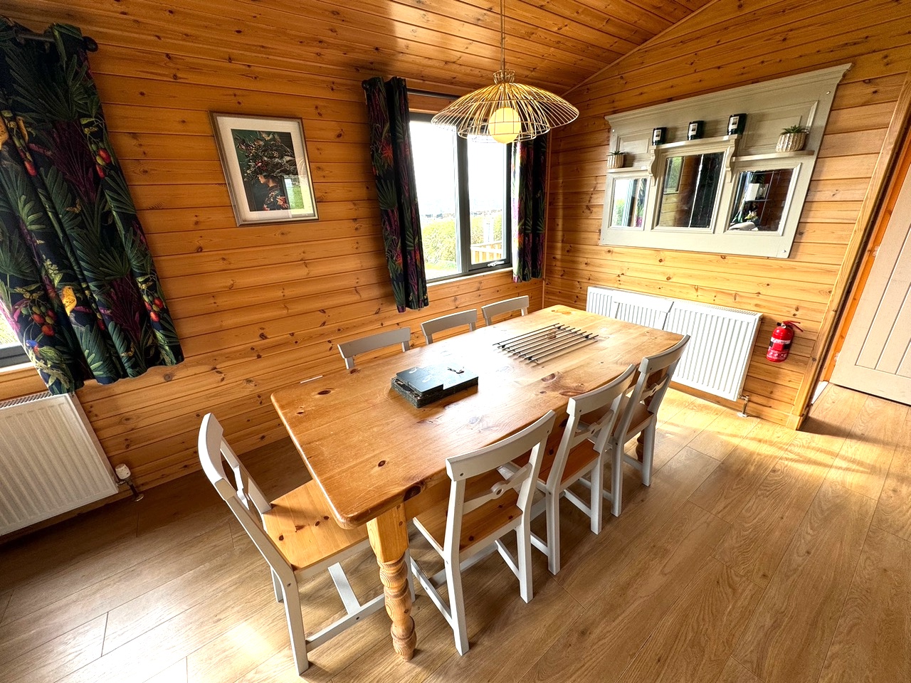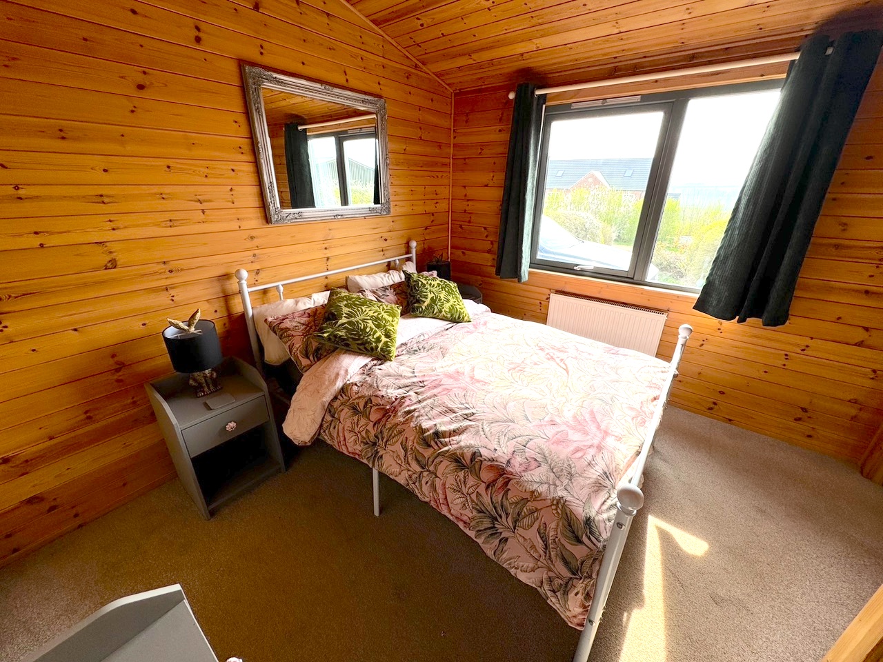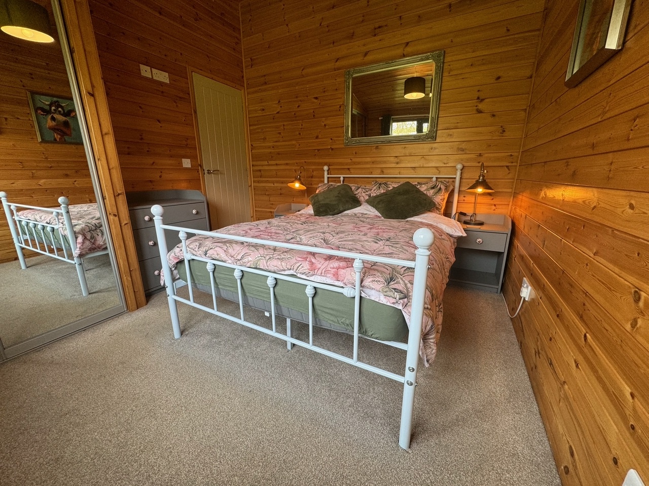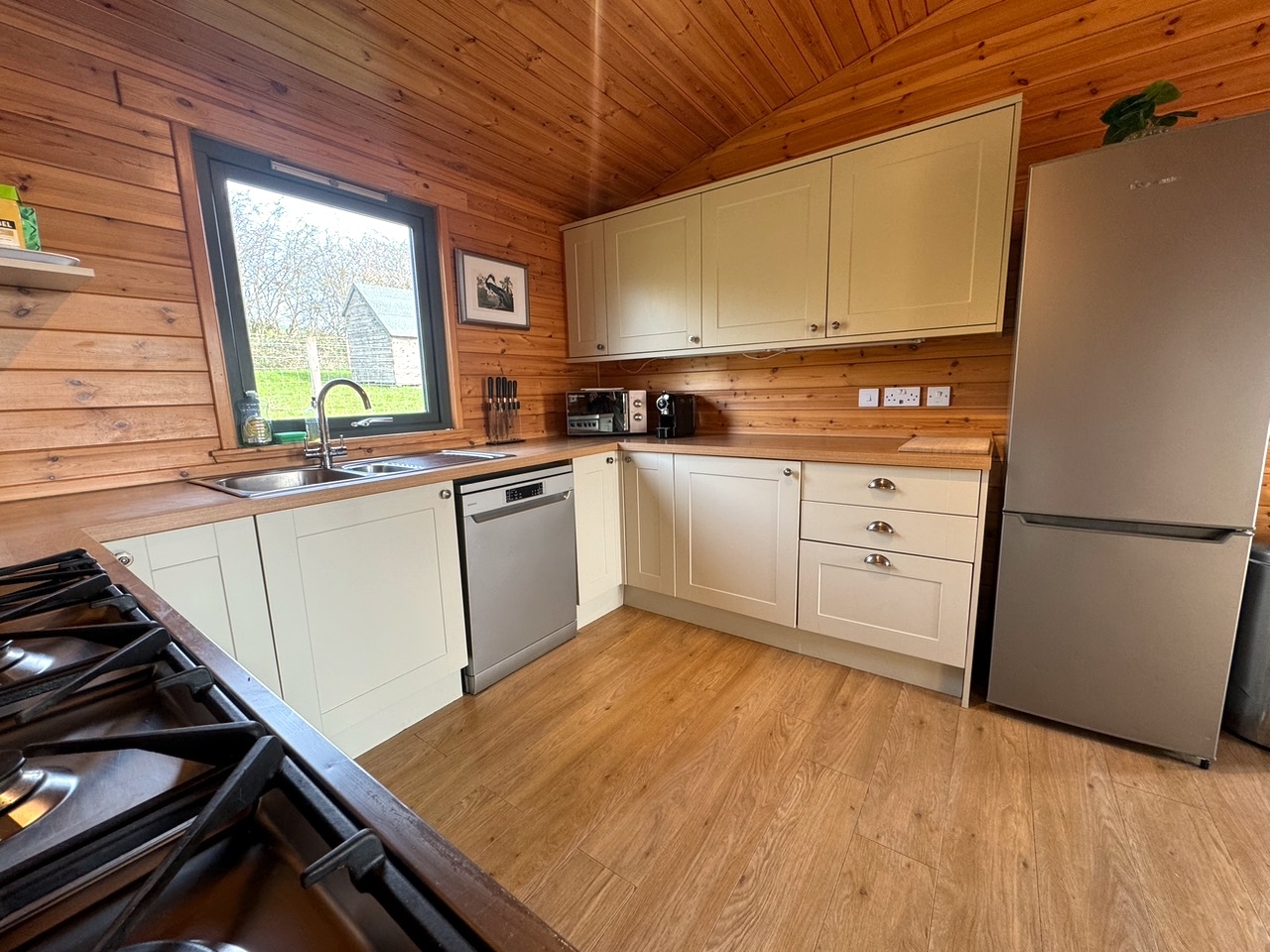 This lovely wooden lodge enjoys a cosy log burner for those chillier evenings, and a well-equipped kitchen perfect for rustling up a celebratory meal. It’s a quiet and peaceful area with sheep and cattle as your neighbours, and depending on the time of year you’ll see the lambs in the adjacent paddock. Use of the paddock for exercising dogs can be agreed with the owner on prior arrangement, as sometimes it can be used for livestock.